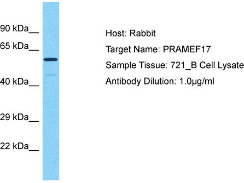This is a rabbit polyclonal antibody against PRAMEF17. It was validated on Western Blot.