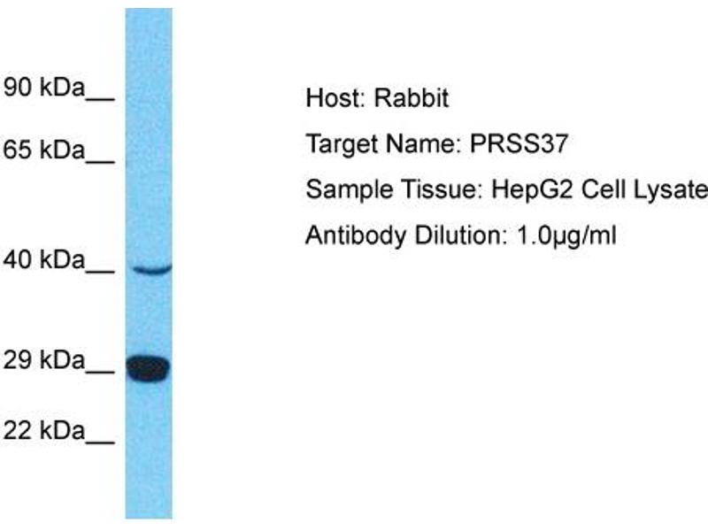 This is a rabbit polyclonal antibody against PRSS37. It was validated on Western Blot.
