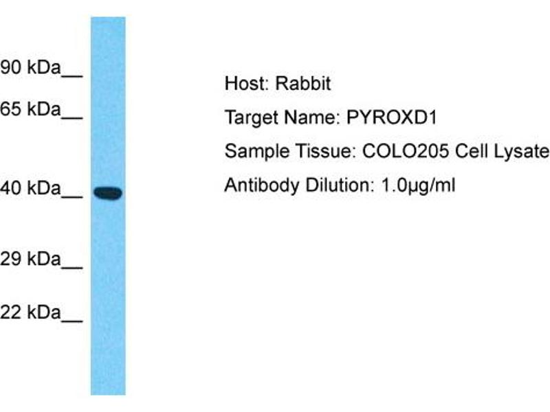 This is a rabbit polyclonal antibody against PYROXD1. It was validated on Western Blot.