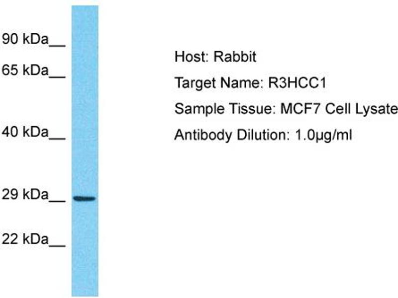 The immunogen is a synthetic peptide directed towards the C-terminal region of Human R3HCC1