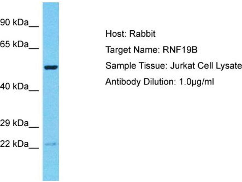 Dieser Kaninchen Polyklonal Antikörper detektiert spezifisch RNF19B in WB. Es zeigt Reaktivität gegenüber Proben von Human, Maus, Ratte, Pferd, Kaninchen, Rind (Kuh), Meerschweinchen, Hund und Zebrafisch (Danio rerio).