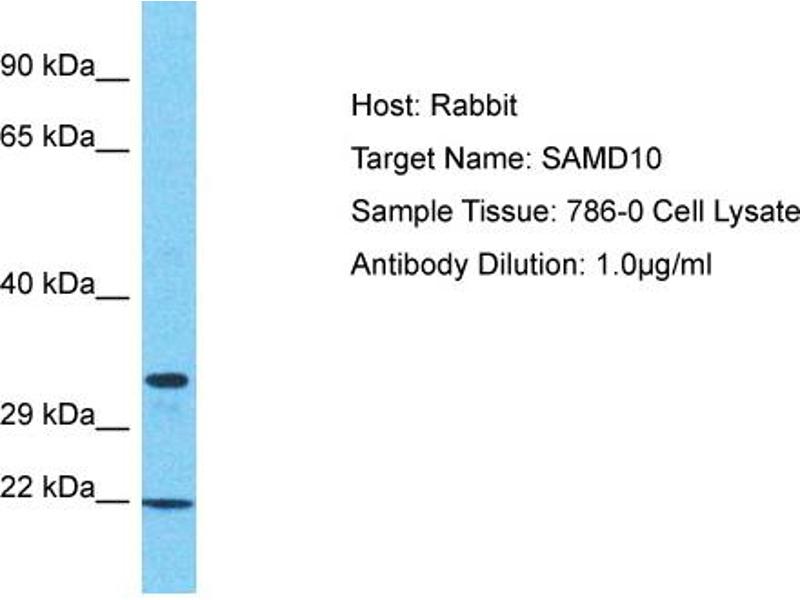 This is a rabbit polyclonal antibody against SAMD10. It was validated on Western Blot.