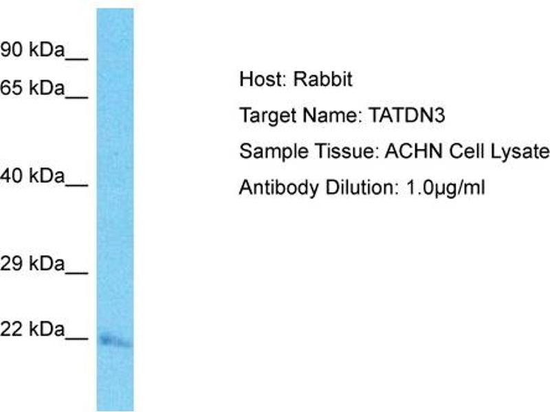 This is a rabbit polyclonal antibody against TATDN3. It was validated on Western Blot.