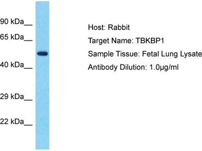 Der Kaninchen Polyklonal anti-TBKBP1 Antikörper wird verwendet zum Nachweis von TBKBP1 in Proben von Human, Maus, Ratte, Rind (Kuh), Hund, Pferd, Schwein, Kaninchen und Zebrafisch (Danio rerio). Er wurde validiert für WB.