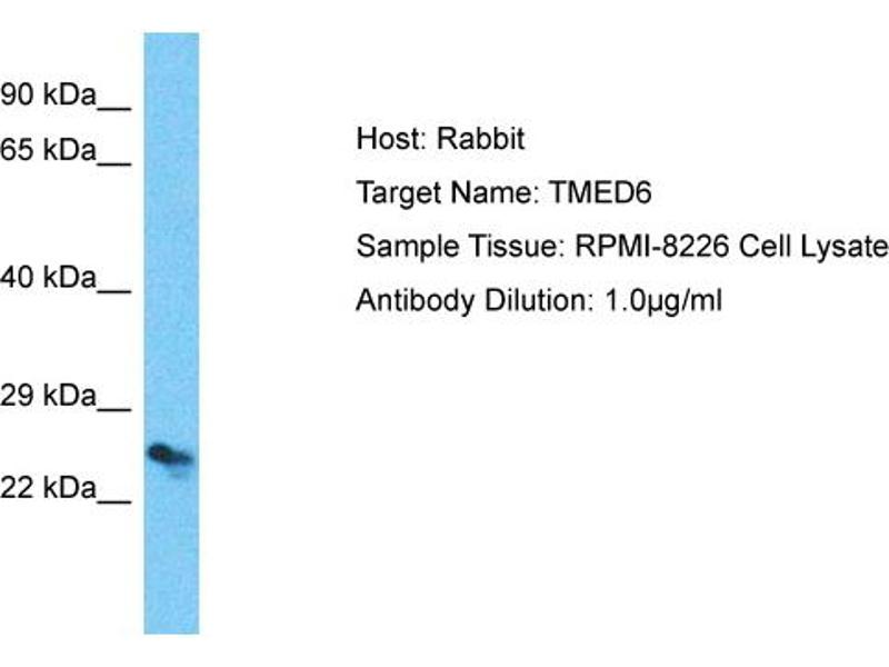 Der Kaninchen Polyklonal anti-TMED6 Antikörper (ABIN2791941) detektiert spezifisch TMED6 in WB.