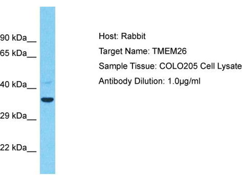 This is a rabbit polyclonal antibody against TMEM26. It was validated on Western Blot.