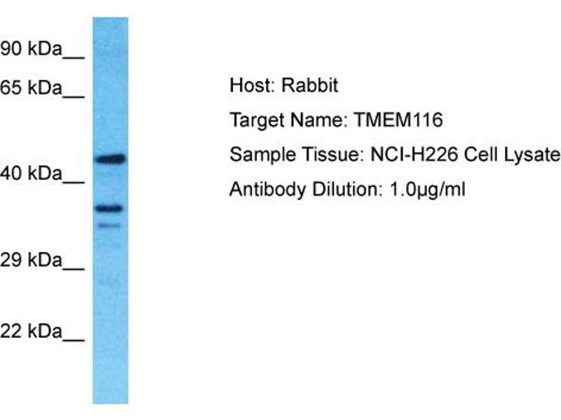 This is a rabbit polyclonal antibody against TMEM116. It was validated on Western Blot.