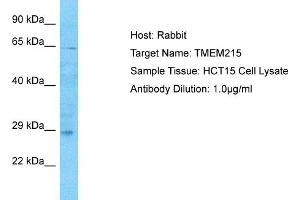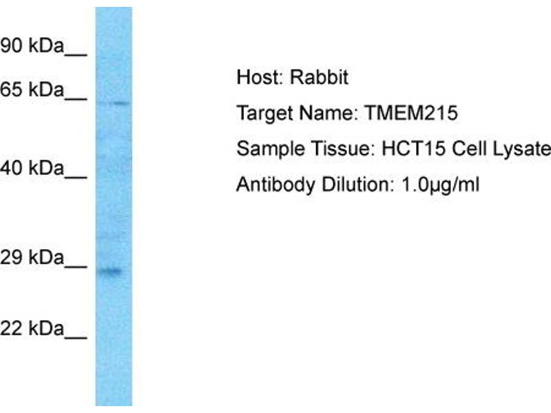 This is a rabbit polyclonal antibody against TMEM215. It was validated on Western Blot.