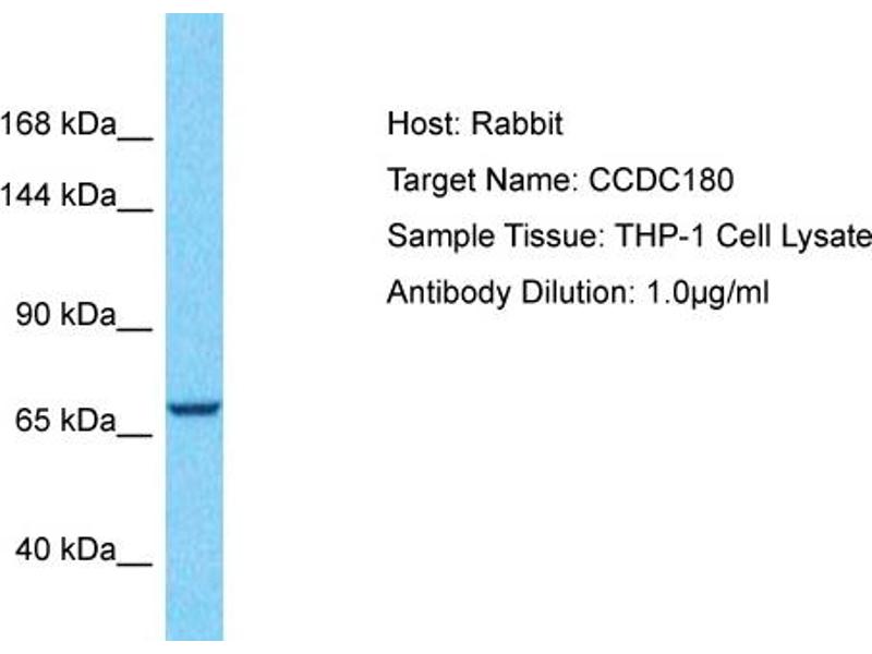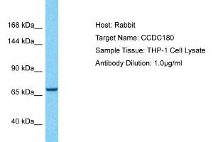This is a rabbit polyclonal antibody against CCDC180. It was validated on Western Blot.