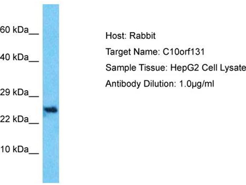 This is a rabbit polyclonal antibody against C10orf131. It was validated on Western Blot.