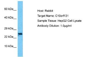 The immunogen is a synthetic peptide directed towards the middle region of Human C10orf131