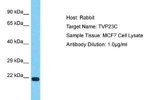 This is a rabbit polyclonal antibody against TVP23C. It was validated on Western Blot.