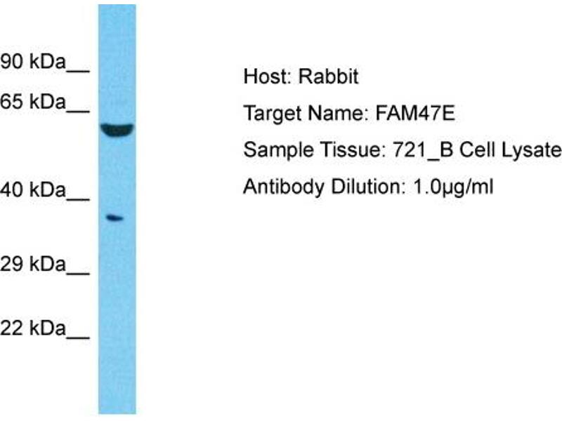 This is a rabbit polyclonal antibody against FAM47E. It was validated on Western Blot.