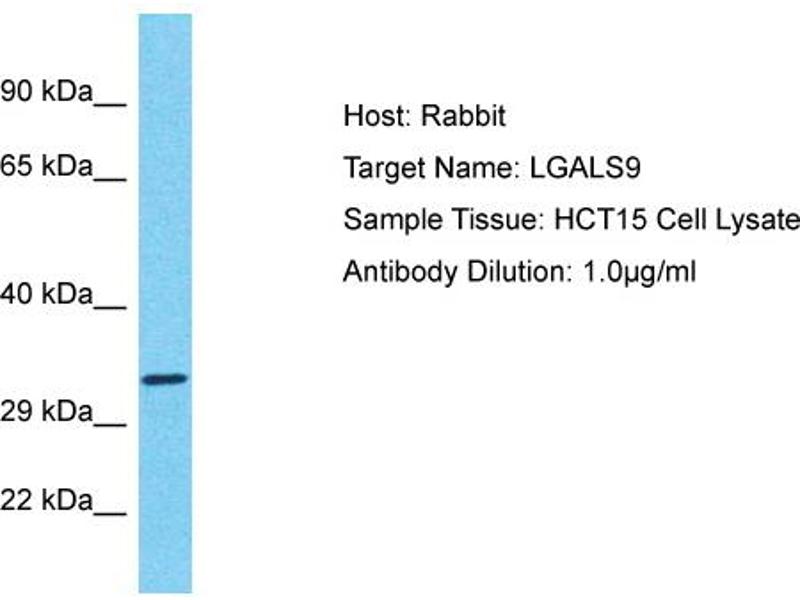This is a rabbit polyclonal antibody against LGALS9. It was validated on Western Blot.