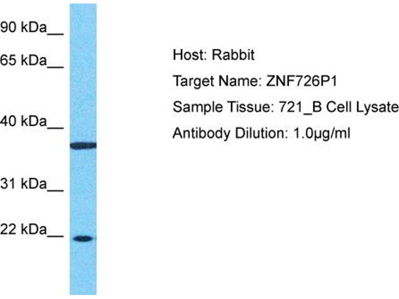 This is a rabbit polyclonal antibody against ZNF726P1. It was validated on Western Blot.