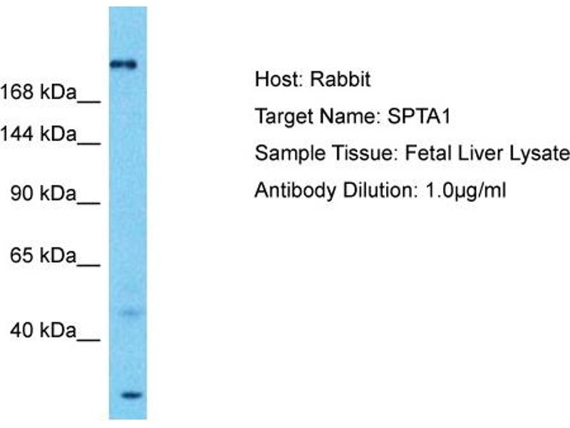 Der Kaninchen Polyklonal anti-SPTA1 Antikörper (ABIN2792075) detektiert spezifisch SPTA1 in WB.