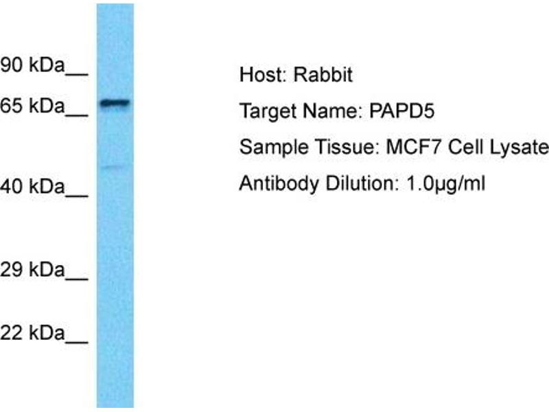 This is a rabbit polyclonal antibody against PAPD5. It was validated on Western Blot.