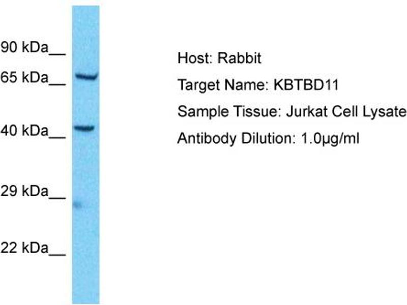 This is a rabbit polyclonal antibody against KBTBD11. It was validated on Western Blot.