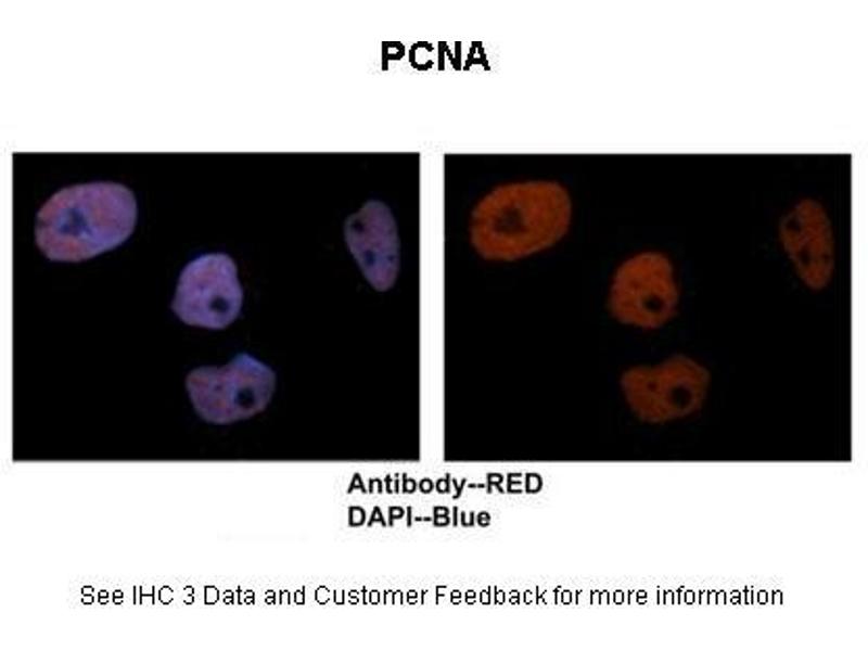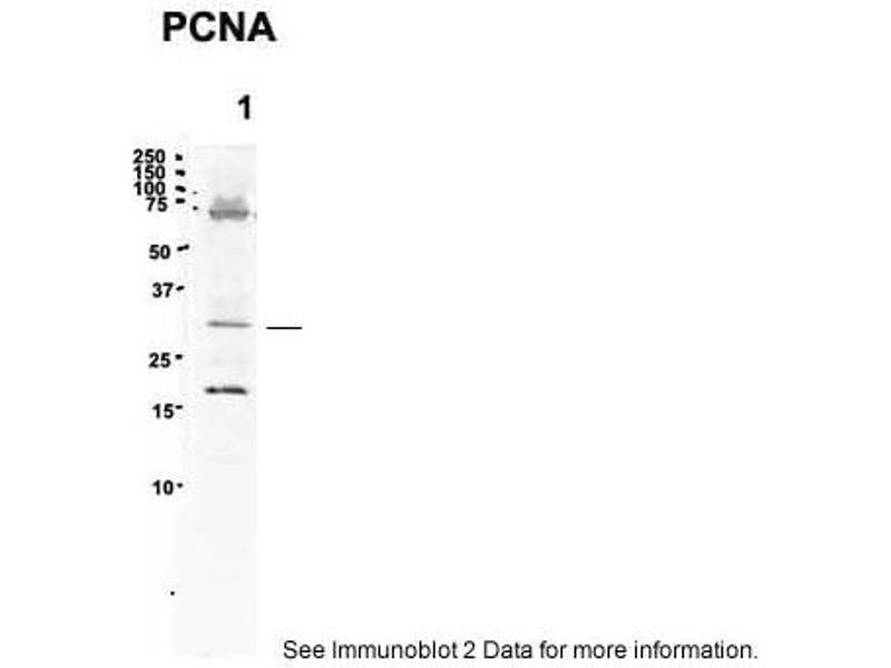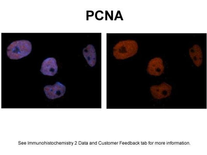 - The immunogen is a synthetic peptide directed towards the C terminal region of human PCNA