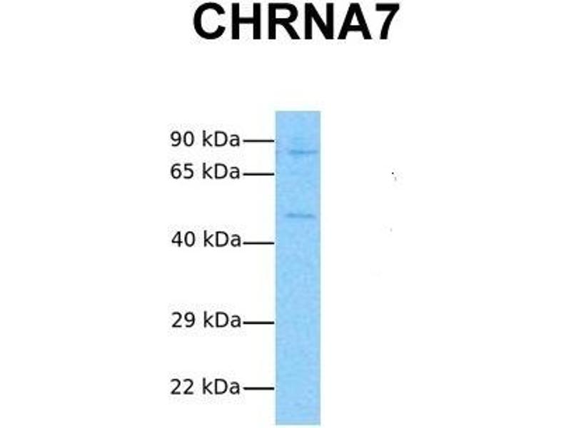 - This is a rabbit polyclonal antibody against CHRNA7. It was validated on Western Blot using a cell lysate as a positive control.
