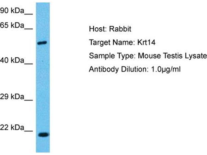 - This is a rabbit polyclonal antibody against KRT14. It was validated on Western Blot using a cell lysate as a positive control.
