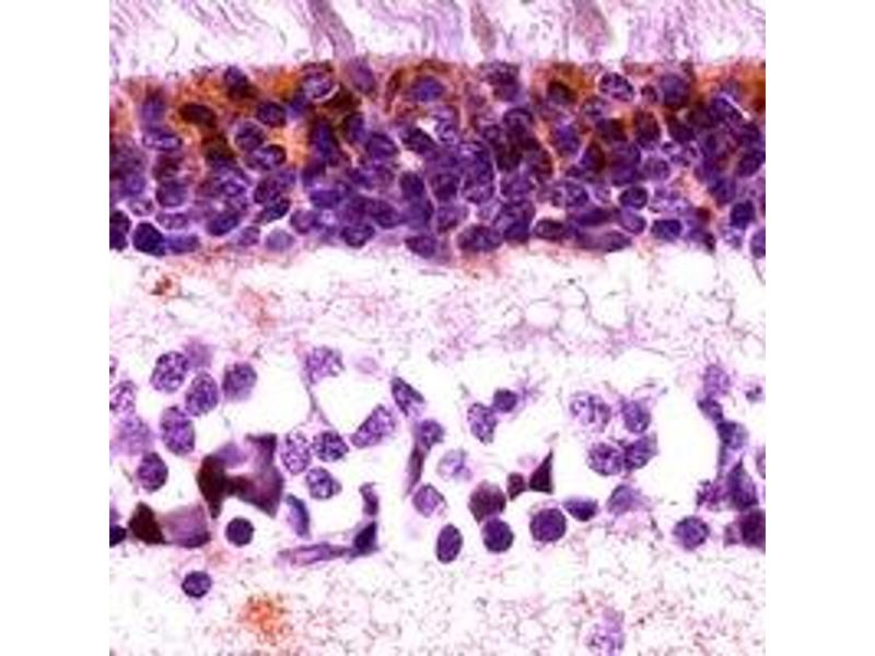 KLH-conjugated synthetic peptide encompassing a sequence within the C-term region of human Cone Arrestin. The exact sequence is proprietary.