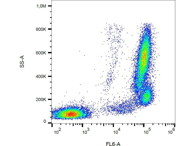 Flow cytometry: The reagent is designed for analysis of human blood cells using 10 μL reagent / 100 μL of whole blood or 106 cells in a suspension. The content of a vial (1 ml) is sufficient for 100 tests.
