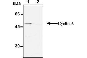 - Cyclin A is a 60 kDa cyclin that binds both cdk2 and p34cdc2 (cdk1), giving two distinct cyclin A kinase activities, one appearing in G1/S phase, the other in G2/M. The level of cyclin A protein peaks in S-phase, and the activity of the cdk2-cyclin A complexes is essential for DNA replication and progression through S phase. Cyclin A is thus a marker for actively proliferating cells and for cells in S-phase. In normal cells, cdk2-cyclin A complexes associate with PCNA and p21CIPP1/WAF1. In addition, cyclin A has been implicated in cell transformation and is found in complexes with E1A, transcrIPPtion factors DRT F1 and E2F, and retinoblastoma protein, p110.Synonyms: CCN1, CCNA, CCNA2, Cyclin A, Cyclin-A2
