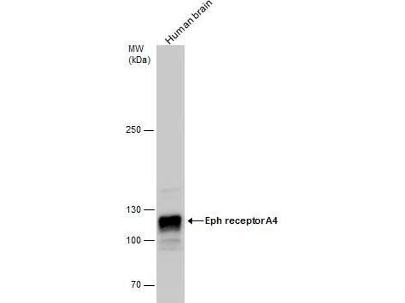 Positive Control: HCT116 , human brain , mouse brain , rat brain , mouse hippocampus , DDDDk-tagged EPHA4-transfected 293T