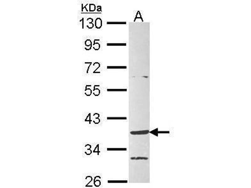 - Carrier-protein conjugated synthetic peptide encompassing a sequence within the center region of human GPR4.