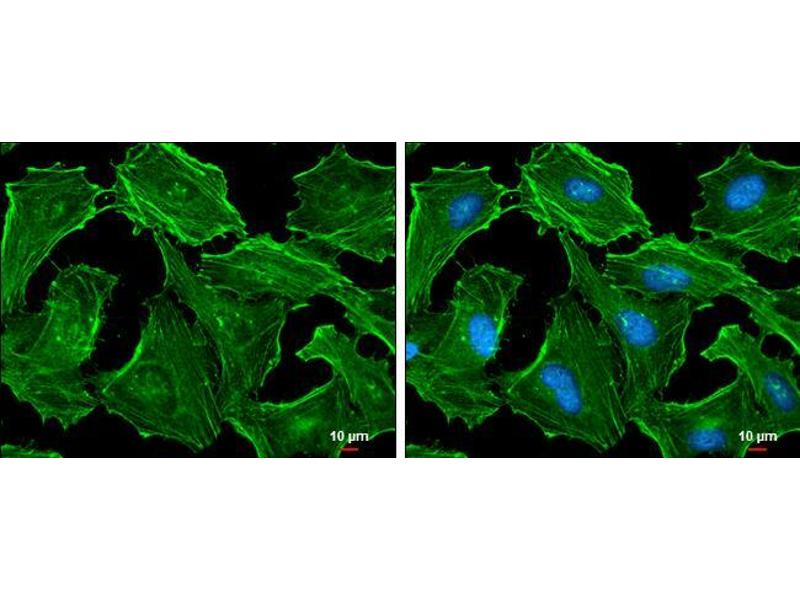 - Carrier-protein conjugated synthetic peptide encompassing a sequence within the C-terminus region of human beta Actin. The exact sequence is proprietary.