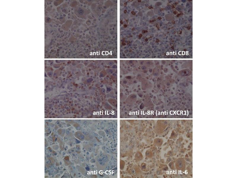 - Carrier-protein conjugated synthetic peptide encompassing a sequence within the C-terminus region of human CXCR1. The exact sequence is proprietary.