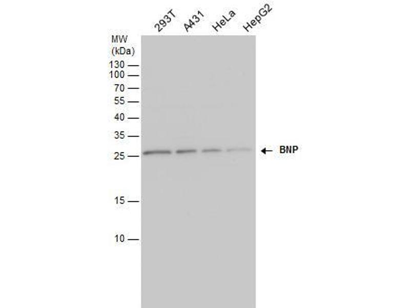 This gene is a member of the natriuretic peptide family and encodes a secreted protein which functions as a cardiac hormone. The protein undergoes two cleavage events, one within the cell and a second after secretion into the blood. The protein's biological actions include natriuresis, diuresis, vasorelaxation, inhibition of renin and aldosterone secretion, and a key role in cardiovascular homeostasis. A high concentration of this protein in the bloodstream is indicative of heart failure. Mutations in this gene have been associated with postmenopausal osteoporosis.