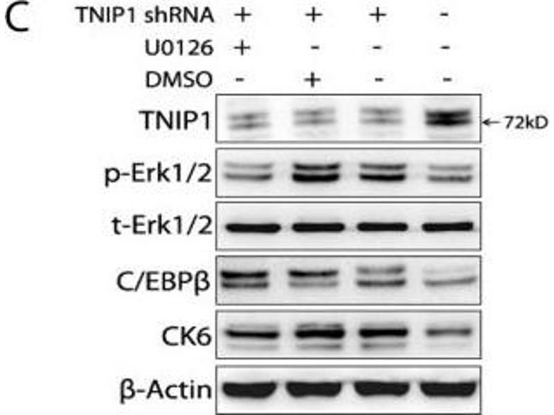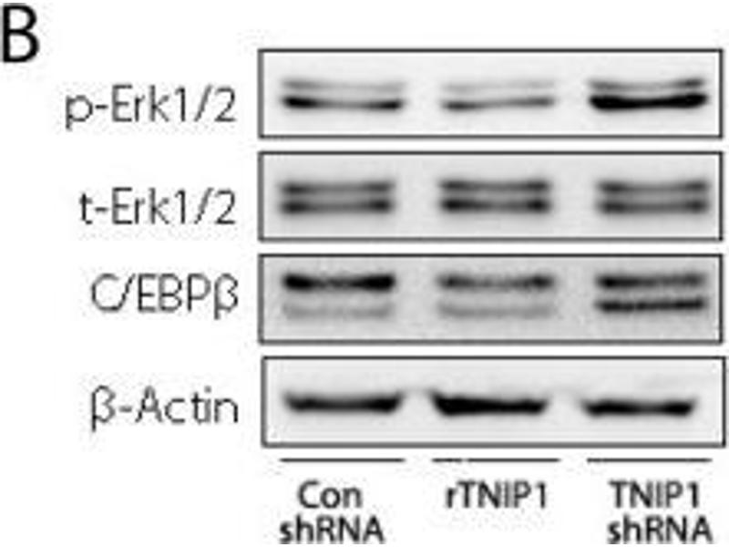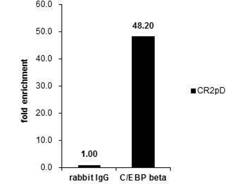 - Carrier-protein conjugated synthetic peptide encompassing a sequence within the N-terminus region of human C/EBP beta. The exact sequence is proprietary.