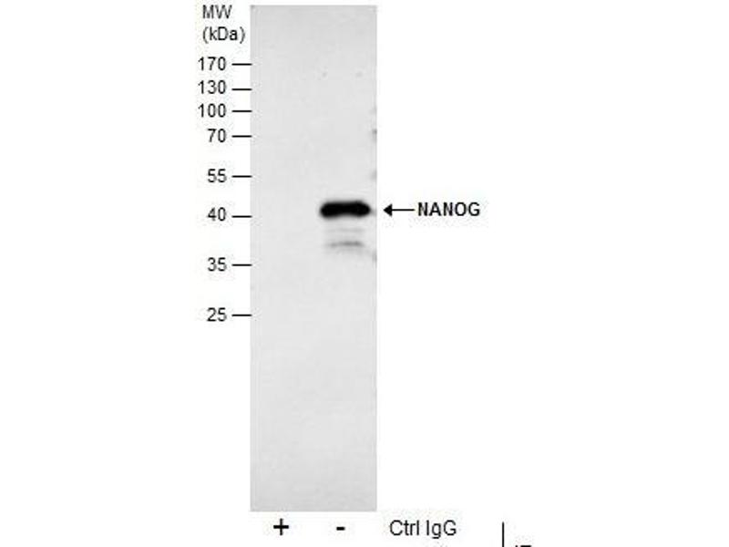 - Recombinant protein encompassing a sequence within the center region of human NANOG. The exact sequence is proprietary.