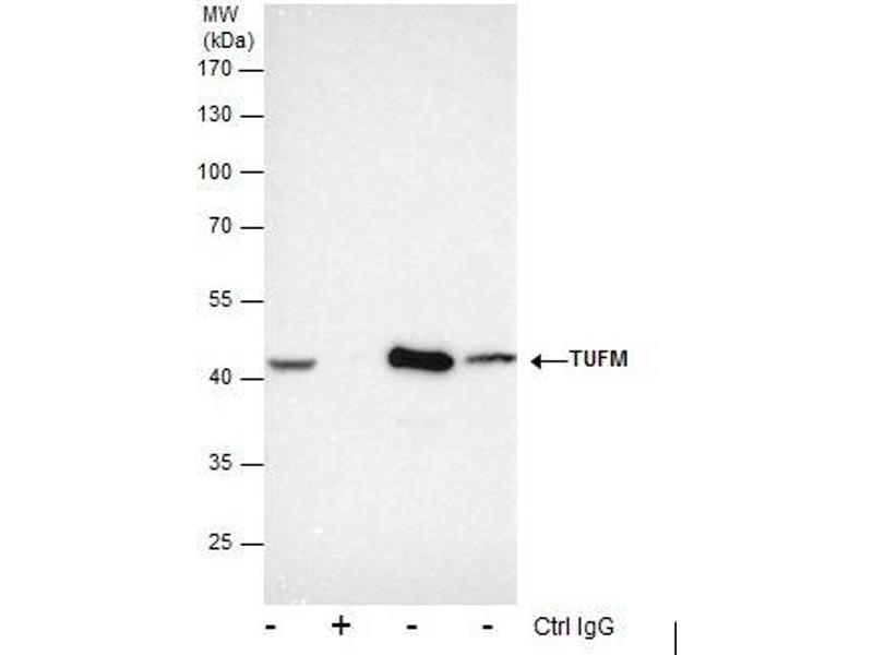 - Recombinant protein encompassing a sequence within the center region of human TUFM. The exact sequence is proprietary.