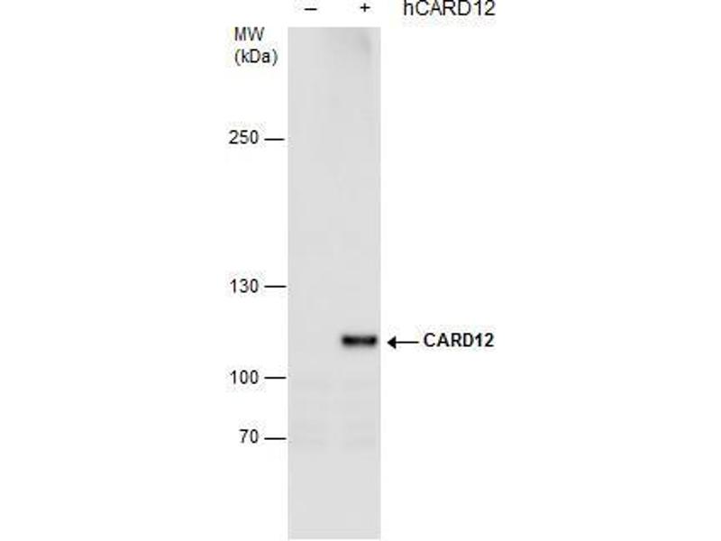 - Recombinant protein encompassing a sequence within the N-terminus region of human CARD12. The exact sequence is proprietary.
