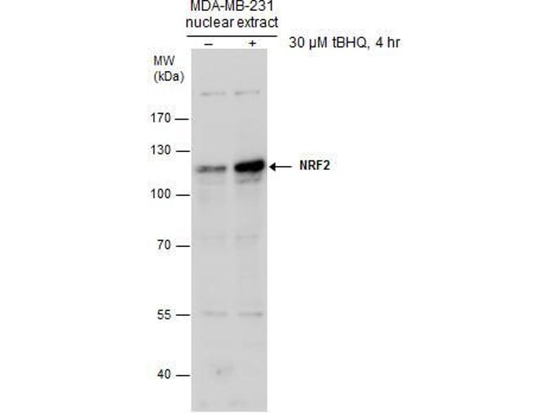 Positive Control: MDA-MB-231 NE , MDA-MB-231 NE treated tBHQ , 3xFlag-human NFE2L2-transfected 293T