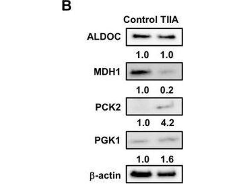 - Carrier-protein conjugated synthetic peptide encompassing a sequence within the center region of human PCK2. The exact sequence is proprietary.