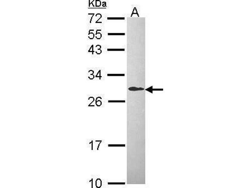 - Carrier-protein conjugated synthetic peptide encompassing a sequence within the C-terminus region of human DCXR. The exact sequence is proprietary.