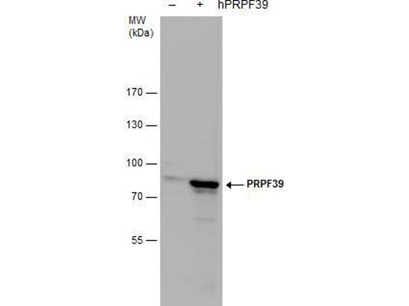 Positive Control: Raji , human 3xFlag-PRPF39 transfected 293T cells
