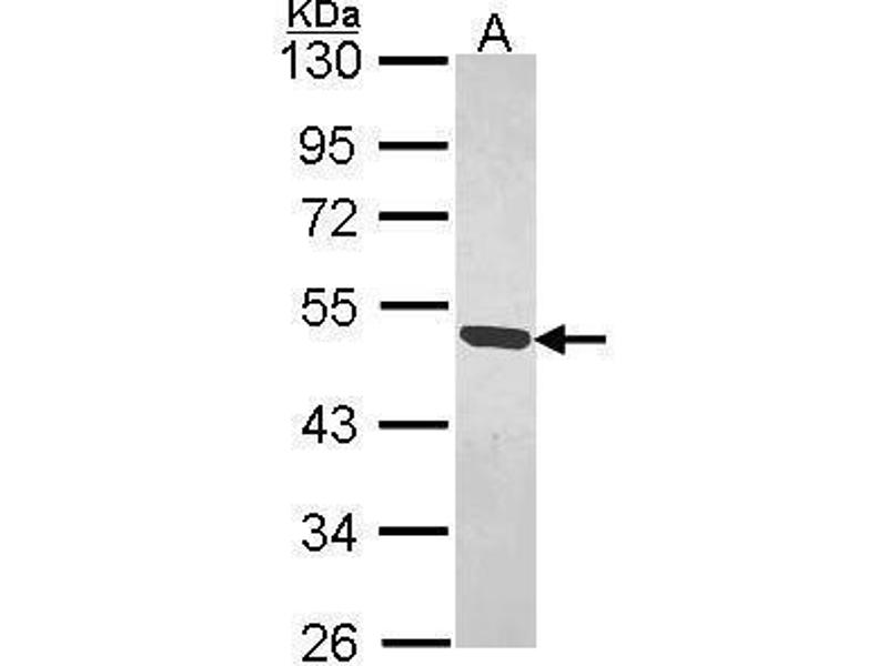 - Recombinant protein encompassing a sequence within the center region of human MAGEB1. The exact sequence is proprietary.