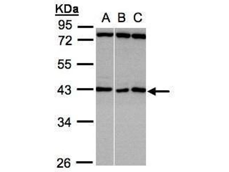 - Recombinant protein encompassing a sequence within the center region of human ASB5. The exact sequence is proprietary.
