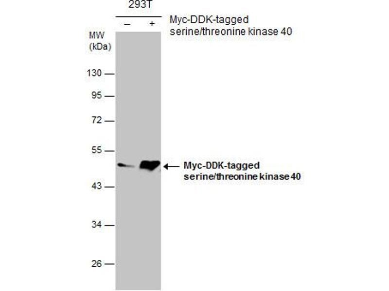 Positive Control: HeLa , HepG2 , Myc-DDK-tagged serine/threonine kinase 40-transfected 293T cells