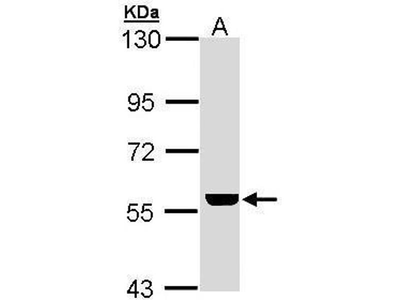 - Recombinant protein encompassing a sequence within the center region of human ADCK4. The exact sequence is proprietary.