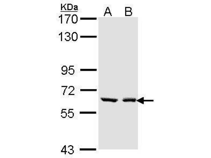 WB: 1:500-1:3000, IHC-P: 1:100-1:1000 [suggested antigen retrieval using heat mediated 10 mM Citrate buffer ( pH 6.0) or Tris-EDTA buffer ( pH 8.0)].