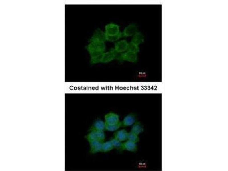 - Carrier-protein conjugated synthetic peptide encompassing a sequence within the C-terminus region of human ABR. The exact sequence is proprietary.