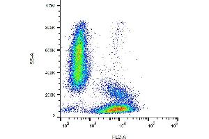 Flow cytometry: The reagent is designed for analysis of human blood cells using 10 μL reagent / 100 μL of whole blood or 106 cells in a suspension. The content of a vial (1 ml) is sufficient for 100 tests.