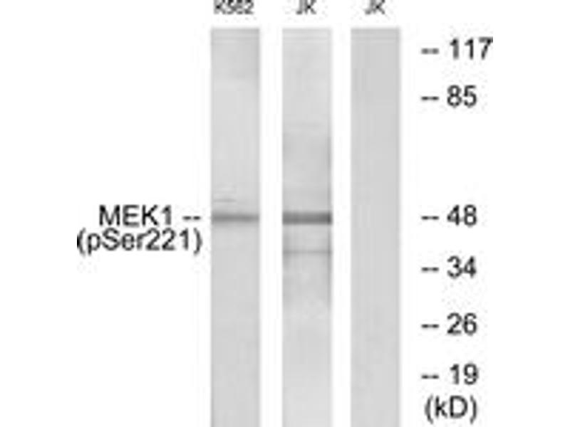 - MEK1/2 (Phospho-Ser221) Antibody detects endogenous levels of MEK1/2 only when phosphorylated at serine221.
