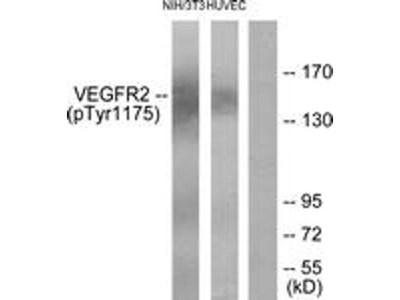 - VEGFR2 (Phospho-Tyr1175) Antibody detects endogenous levels of VEGFR2 only when phosphorylated at tyrosine1175.